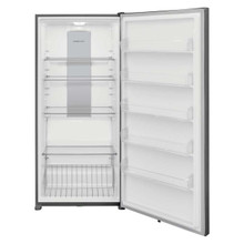 This Frigidaire 20 cubic foot upright freezer includes a superior tight seal that locks in cold air, keeping food frozen for two days if there is a power outage. The EvenTemp Cooling System has a variable speed compressor that constantly circulates cold air throughout the freezer with smart sensing technology that adjusts air flow to maintain a uniform temperature. The flexible interior organization system enables you to easily organize your family's frozen favorites with four adjustable, full-width glass shelves, deep bottom basket, and five spacious door bins.